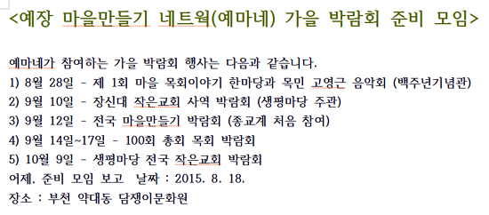 ¸¶À»¸ñȸ À̾߱â¿Í ÀÛÀº ±³È¸ ¹Ú¶÷ȸ·Î ¿¸®´Â 2015 °¡À»!!